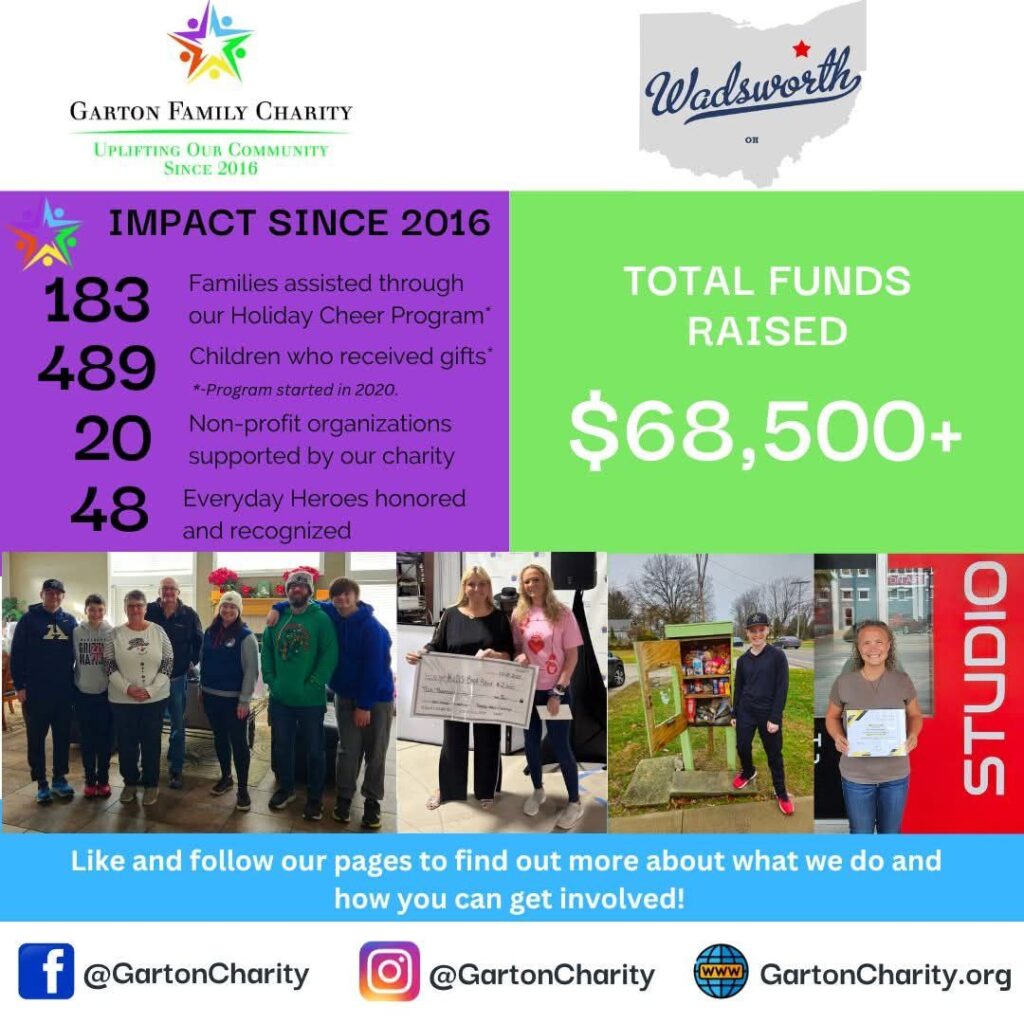 Who We’ve Helped Since 2016, Garton Family Charity has raised over $68,500 to support non-profit organizations and service projects. Follow Us Follow us on Facebook, Twitter or Instagram.